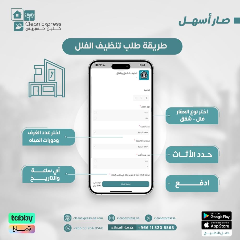 - ⏳ مدة تنظيف الفلل: من ٢–٣ أيام عمل.